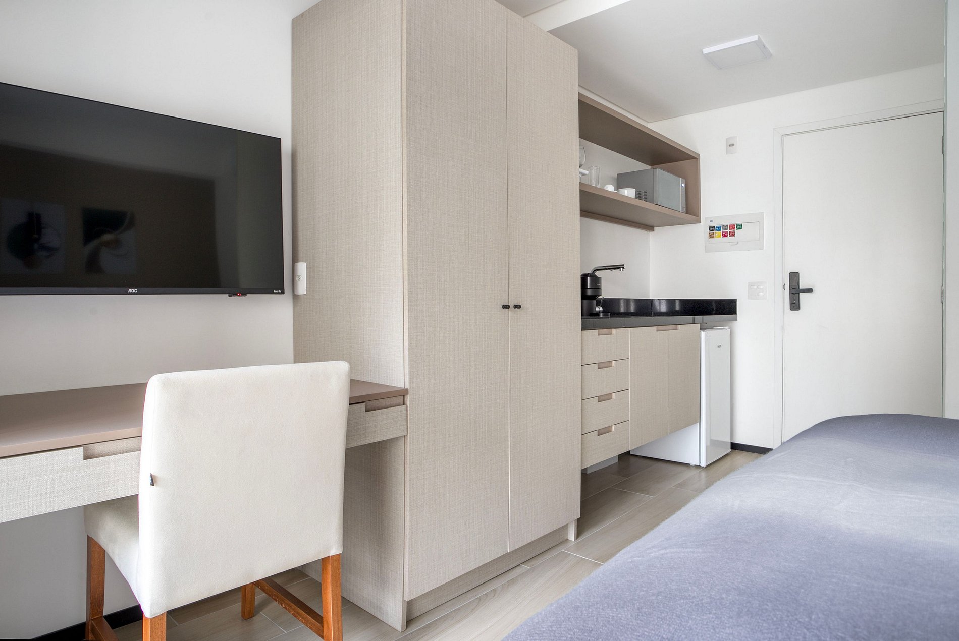 Relaxe na piscina do rooftop com vista para a cidade, mantenha sua rotina na academia equipada, trabalhe com foco no coworking com Wi-Fi de alta velocidade e aproveite as comodidades do dia a dia, como lavanderia, cozinha compartilhada, bicicletário, armário para entregas e até um mercadinho no térreo.
