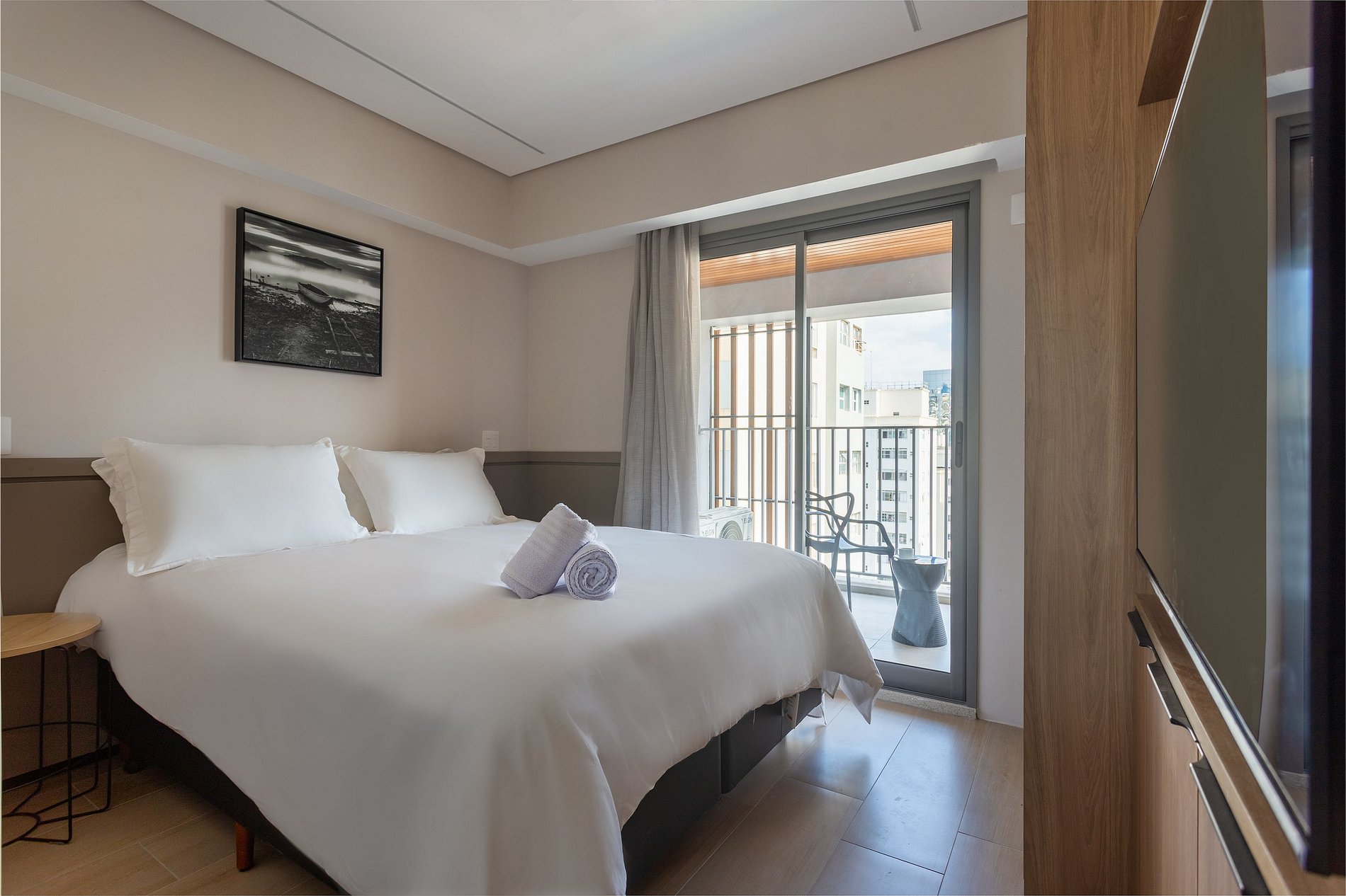 Hospede-se com estilo neste studio de 42m², que combina conforto e um toque contemporâneo. A poucos passos da Oscar Freire e da Nove de Julho, perfeito para quem quer aproveitar São Paulo com praticidade e sofisticação.