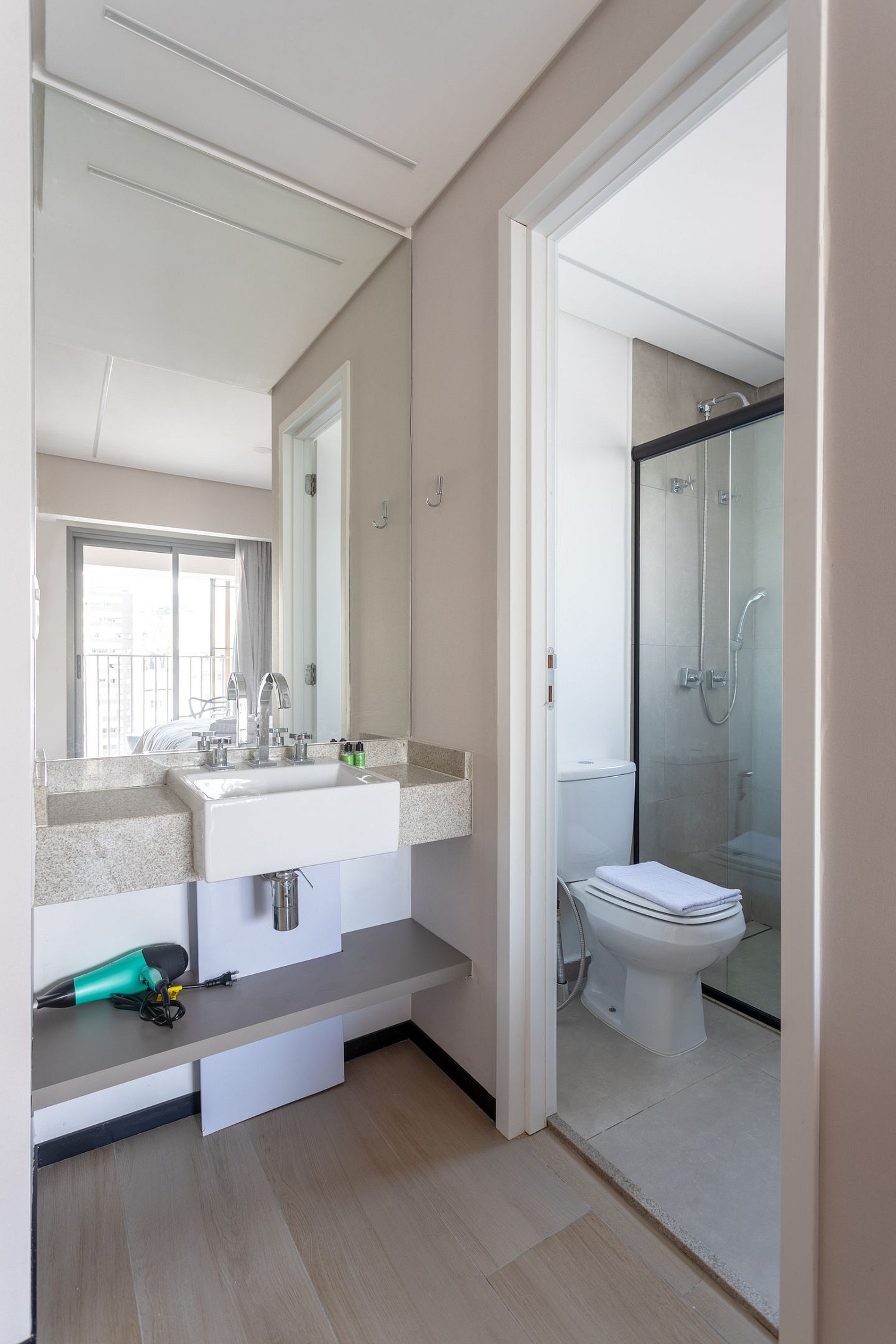 Relaxe na piscina do rooftop com vista para a cidade, mantenha sua rotina na academia equipada, trabalhe com foco no coworking com Wi-Fi de alta velocidade e aproveite as comodidades do dia a dia, como lavanderia, cozinha compartilhada, bicicletário, armário para entregas e até um mercadinho no térreo.
